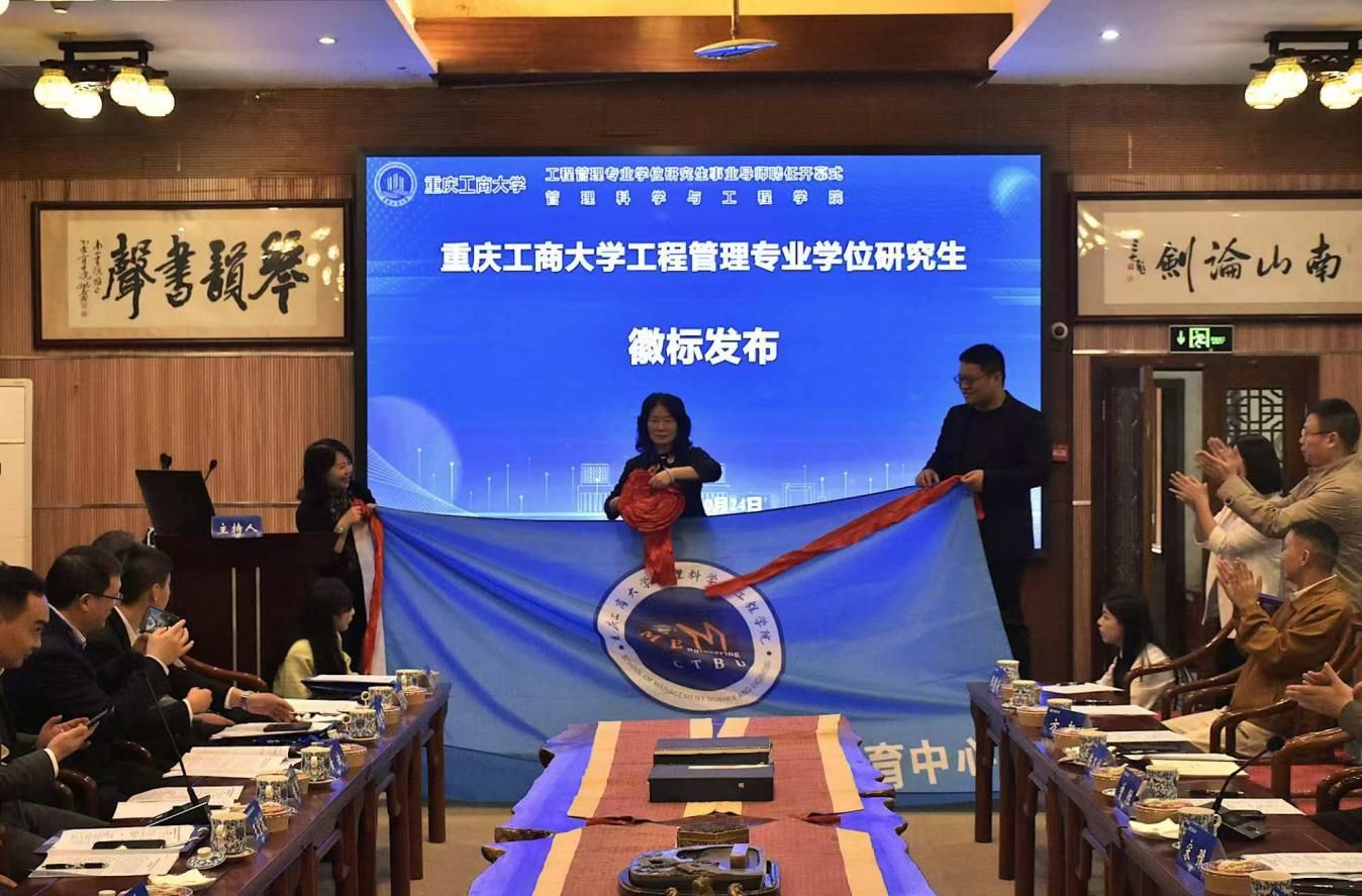 随后,重庆工商大学校党委宋豫副书记、管科科学与工程学院黄钟仪院长、重庆高速集团资产管理有限公司杜永杰副总经理共同发布了重庆工商大学工程管理专业学位研究生徽标并剪彩。