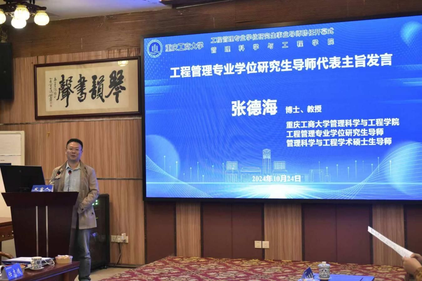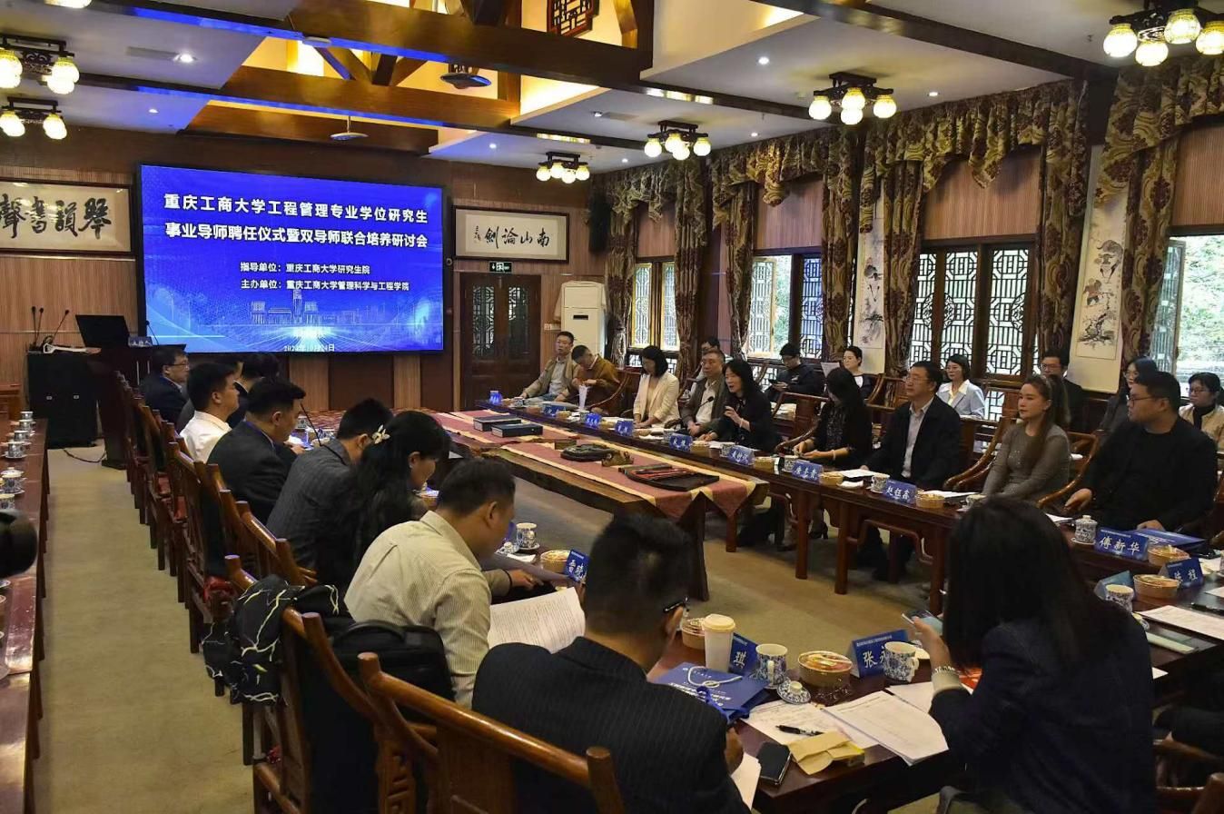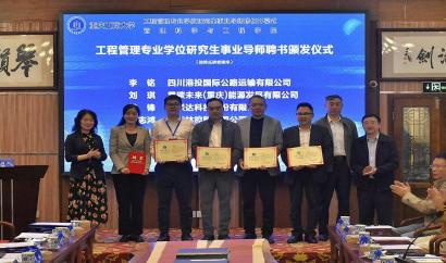 太阳成tyc7111cc陈久梅副院长宣读了《关于聘任重庆工商大学工程管理专业学位研究生事业导师的决定》。校党委宋豫副书记、研究生院曾胜副院长和我院领导依次为受聘事业导师颁发聘书。