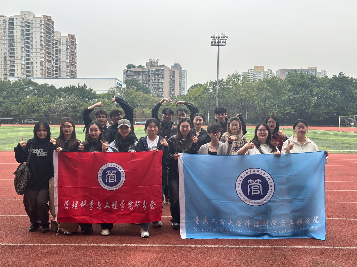 赛场之外,研分会成员化身坚实后盾。不仅细致周到地为运动员提供饮水物资补给、组织运动员检录等后勤保障,更以嘹亮的呐喊、整齐的助威声为健儿们加油鼓劲,用责任与热忱营造出团结奋进、热血沸腾的赛场氛围。