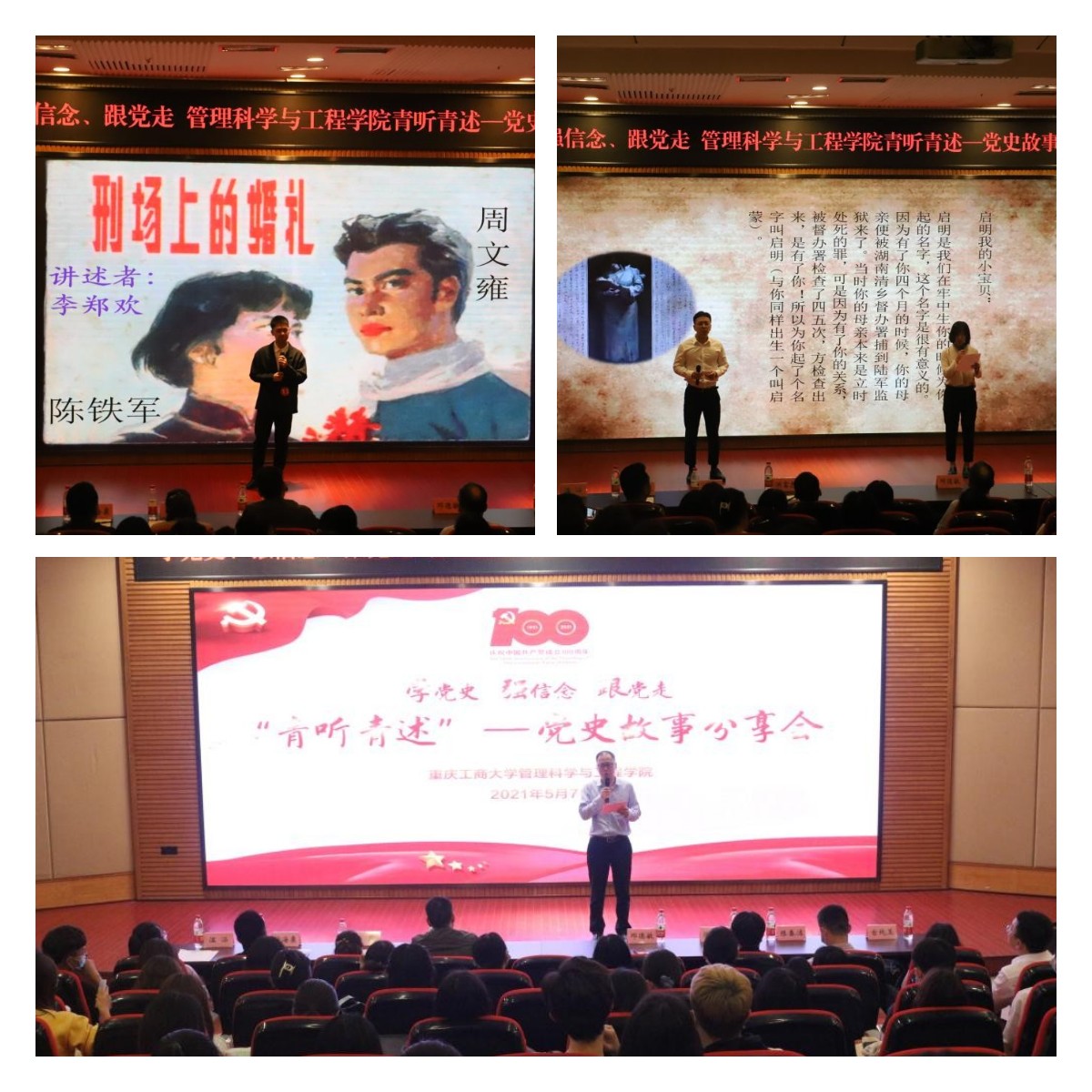 5月7日晚,学院以“学党史、强信念、跟党走”为主题的“青听青述”党史故事分享会在博智楼7200报告厅成功举办。分享会上,师生党员齐上台,用表演、朗诵和讲述等丰富多彩的形式再现了党史上的英雄人物和感人故事。一个个党史故事传承着党的红色基因,激励着青年学子坚定信念,为梦想与未来不断奋斗进取。
