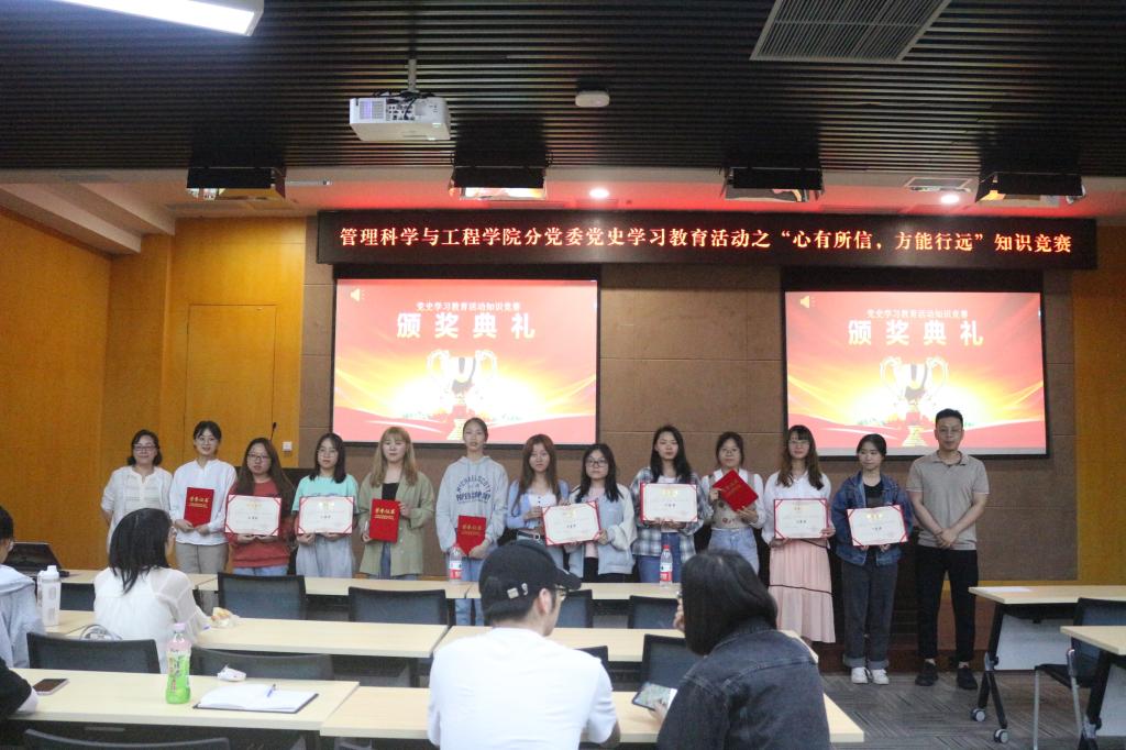 最后,老师们为获奖选手颁发证书,太阳成tyc7111cc分党委党史学习教育活动之“心有所信,方能行远”知识竞赛在一片热烈的掌声中圆满结束。