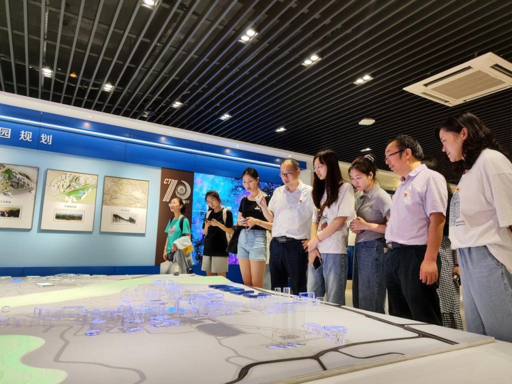 主题党日第二站,校史馆。升级改造后的校史馆焕然一新,信息化、科技感、互动性让党员们非常兴奋,大家在校史馆里移步换景,通过一张张照片、一段段文字、一件件实物、一个个地名和姓名,详细了解重庆工商大学70年来的发展历程。在参观结束时,邓德敏为全体党员现场上了一堂微党课。他说,今天让大家来参观校史馆,就是让大家了解学校70的发展历程中,有艰辛、有汗水、有泪水;有成就、有鲜花、有掌声;这些都充分见证了一代一代重工商大人立德树人的初心使命,见证了一代一代重工商大人砥砺奋进的责任担当。同学们即将离开学校,大家要从学校的发展历程中汲取前行的力量,牢记使命,肩负责任,勇于担当,踔厉奋发。
