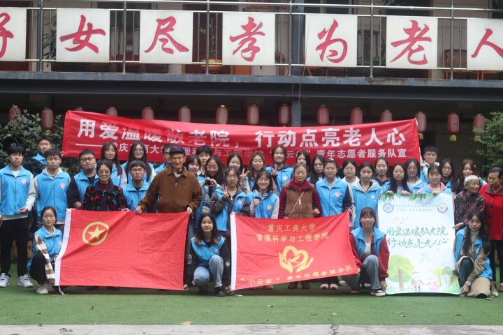 为弘扬我国“关爱老人、尊老爱幼”的优秀传统美德,重庆工商大学太阳成tyc7111cc‘小云雀’青年志愿者服务队于2023年11月4日在重庆市南岸区南山街道泉山村麻柳湾33号成功开展以“用爱温暖敬老院,行动点亮老人心”为主题的南山敬老活动。