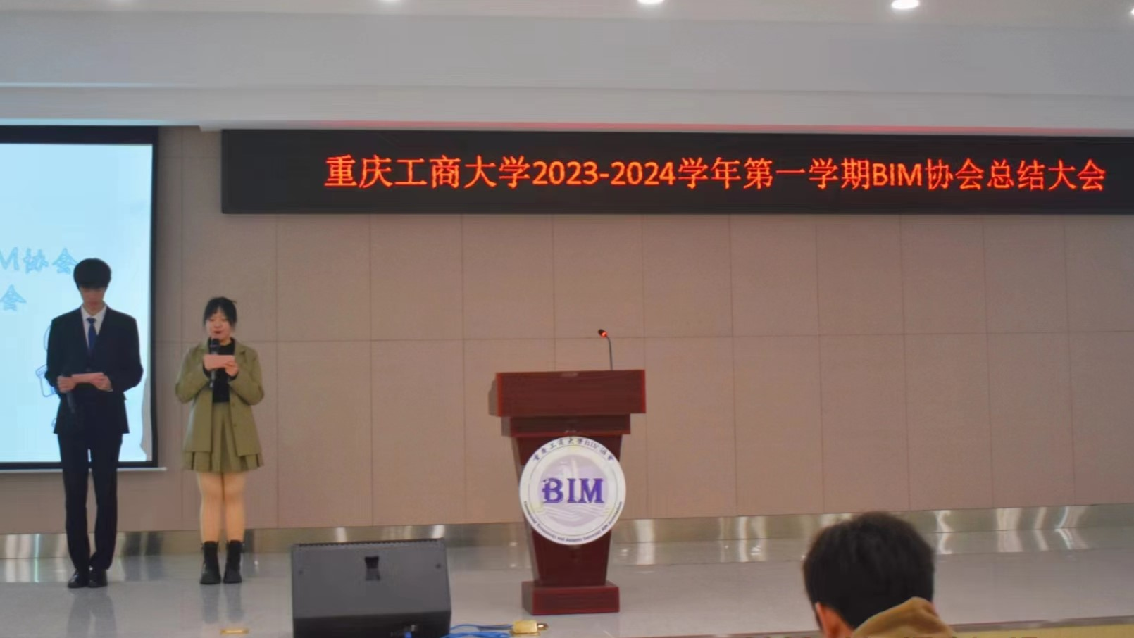 出席本次大会的有工程管理系主任肖艳老师、副系主任 梁桂保老师,社团中心主席团成员陈映溪,管工学院艺术团团长何驯,未来经理人协会副会长吴诗麒以及BIM协会全体成员。
