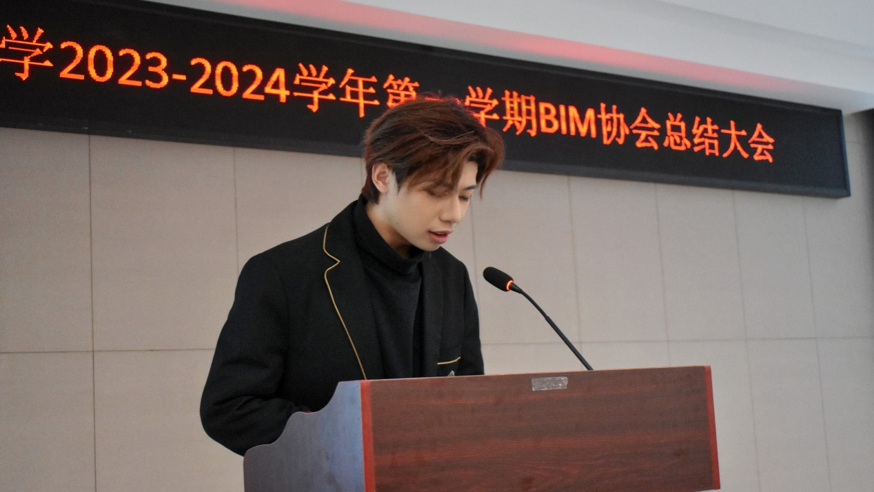 接着由社团中心主席团成员陈映溪同学发言。她首先对BIM协会所取得的各项成就表示赞许,接着她讲到,在刘涛会长的带领下,BIM协会同各社团联系不断加深,协会面貌也在不断丰富,“三下乡”活动成功入围展示、发展型资助项目立项等成绩都体现着协会的深厚底蕴。学生社团是人才培养的重要阵地,BIM协会便是提升自我的一片沃土,祝愿BIM协会在各位成员的共同努力下能够越办越好。