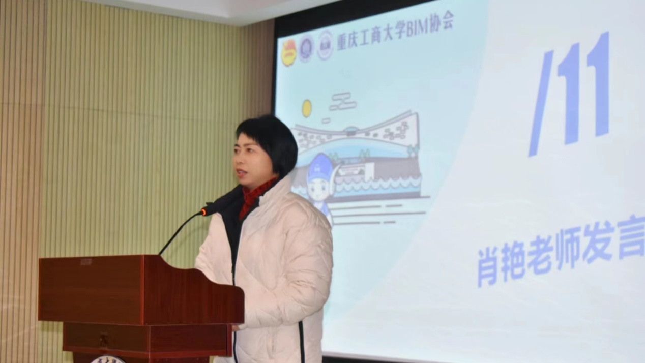 大会最后,由肖艳老师做总结发言。她首先对本学期各部门成员的辛勤付出给予充分肯定和由衷感谢,随后指出BIM协会是由工程管理系领导亲自担任指导老师,具有得天独厚的工作保障,各成员要对协会抱有信心,同时各部门间要加强合作,共创辉煌。