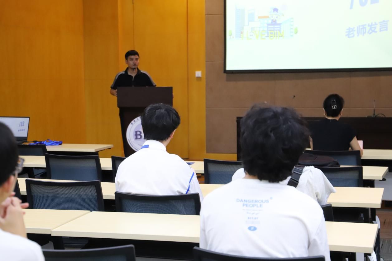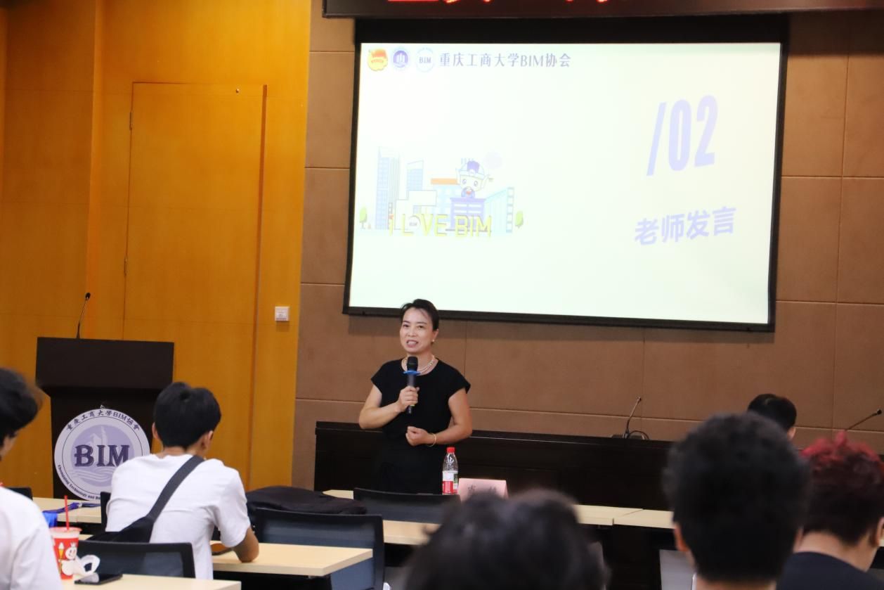 随后,由工程管理系教授肖艳老师发言,肖老师首先向同学们详细地介绍了BIM协会的历史与成就。随后,她告诫同学们重要的不是学什么专业,而是提升自身的能力,牢记“不是学什么才干什么,而是干什么才学什么”,并要建立对协会,以及整个大学生活的期待与目标。最后,她呼吁同学们积极参加学科竞赛,培养自身与他人沟通交流能力,并充分利用身边的资源来发展自己。