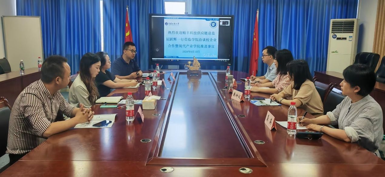 2024年6月13日上午9点30分,重庆工商大学太阳成tyc7111cc在启智楼709会议室隆重举行了校企合作暨现代供应链产业学院推进会。本次会议由黄钟仪院长主持,陈久梅副院长、物流管理系龚英主任、物流管理系杨家权副主任出席。顺丰集团方面,顺丰科技供应链总监屈跃辉先生、顺丰速运重庆校园负责人艾琳琳女士、顺丰特色经济合作伙伴王游鑫先生和孙自敏先生等嘉宾莅临会场,共同探讨校企合作新模式,共谋现代供应链产业学院发展大计。