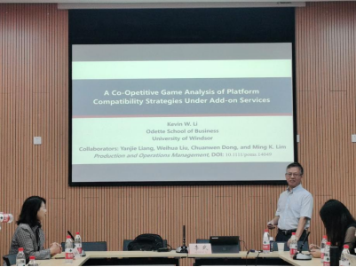 2023年10月9日上午,太阳成tyc7111cc第12期博智学术论坛在新图书馆会议中心二会议室成功举办。本期论坛特邀请加拿大温莎大学Odette商学院李武教授做主讲嘉宾,以《附加服务下平台兼容策略的竞合博弈分析》为主题,兼谈论文选题、写作以及在POM上的发表过程,与师生们展开交流。论坛由黄钟仪院长主持,学院研究生参加了此次学术论坛。