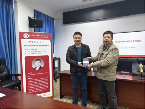 周愉峰教授生动详细的报告内容给在场的同学们带来很大的启发,学术报告结束后,周愉峰教授耐心解答了在场的同学们的提问。最后,詹川副院长为周瑜峰教授送上我们的礼物并再次表示感谢,本次讲座取得圆满成功。