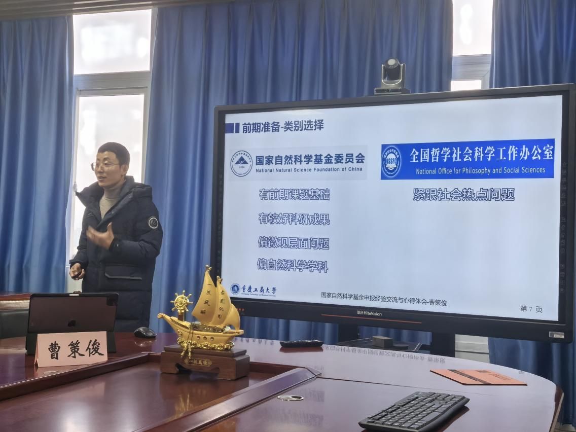 曹策俊教授就国家自科基金申报心得与在座老师进行了分享。首先,曹教授分享了自身学术研究的基本概况。其次,曹教授结合个人申报的宝贵经验,总结提炼出了前期准备的五个“选择”,分别是类别选择、代码选择、属性选择、课题选择、成员选择,进一步强调了前期准备的重要性。然后,曹教授详细讲解了“5W1H”的申报书撰写方法。其中,“Why”旨在立项依据部分回答为什么值得做此课题。“What”旨在研究内容部分回答此课题研究哪些内容,强调了研究内容要有精美的内容框架图、严谨的内容逻辑线和清晰的内容要点式。“How”旨在研究方案部分回答如何做此课题,包括技术路线与总体设计思路、研究方法和可行性分析。“Who”旨在项目的特色与创新之处、研究基础部分回答此课题应该交给谁来做。“When”旨在年度研究计划部分回答如何推进此课题。“Where”旨在预期研究成果部分回答研究成果体现在哪些方面,如理论成果、学术成果、人才培养、国际合作交流、成果使用去向及预期社会效益。最后,曹教授总结指出了选题要顶天立地、以小见大;写作要先整体后局部、逻辑清晰;细节要图文并茂、排版精美;态度要会的做到极致、不会的尽量做好。