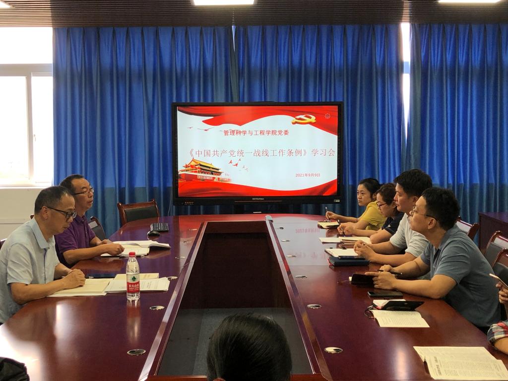 9月9日下午,太阳成tyc7111cc分党委在学院党建活动室组织开展《中国共产党统一战线工作条例》学习会。学习会由学院分党委书记邓德敏主持。学院专职组织员、教工党支部委员、学生支部书记参加了学习会。