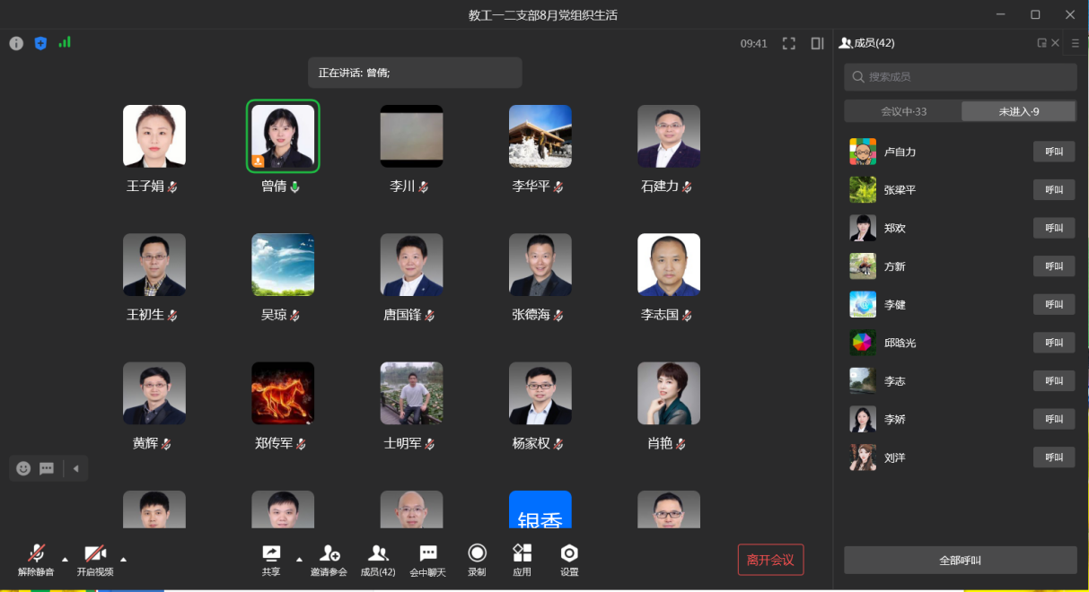 2022年8月30日晚上20:00,太阳成tyc7111cc教工一、二支部在企业微信召开线上党组织生活。本次会议由教工一支部书记曾倩同志主持,共设支部书记领学相关重点学习材料、学院党委书记李华平同志发言两项议程。