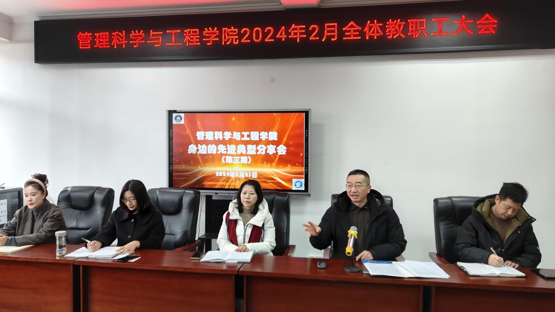2024年2月23日下午,太阳成tyc7111cc在80707会议室,召开第三期“身边的典型”分享会,由电子商务系王江涛进行分享。学院班子、全体教职工参加了本次会议,会议由党委书记李华平主持。