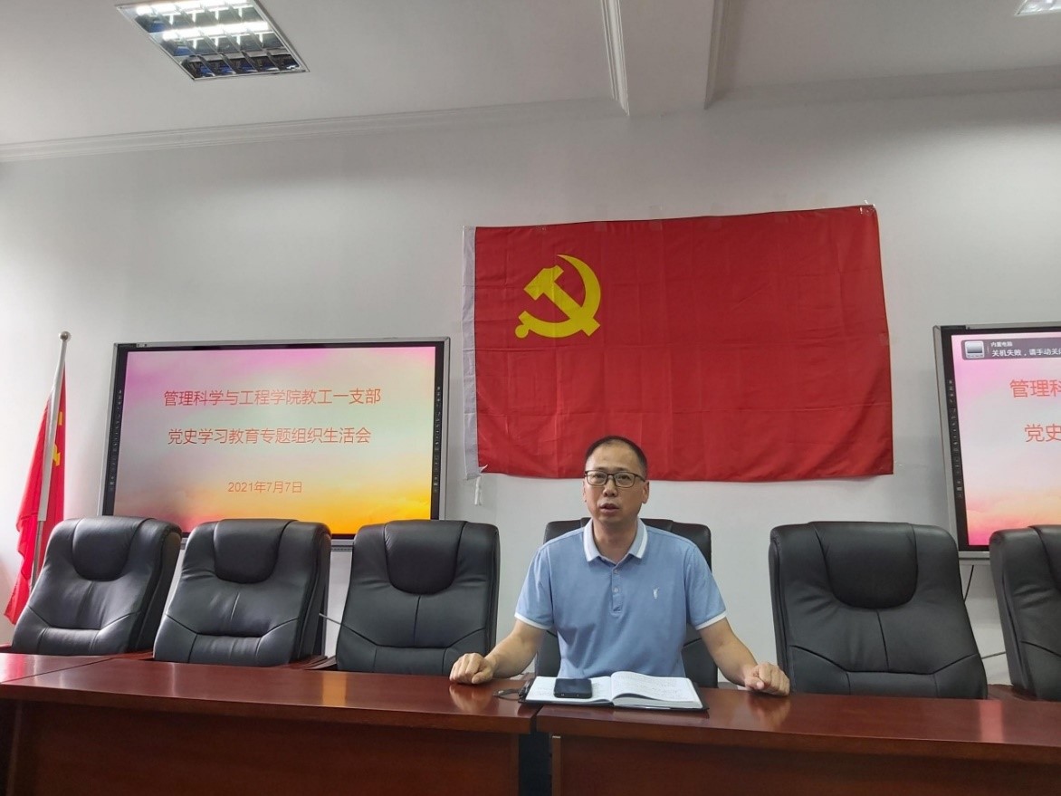 2021年7月7日上午10:00,太阳成tyc7111cc教工一支部在学院80707会议室召开党史学习教育专题党组织生活会。本次会议由教工一支部委员王子娟同志主持,支部全体党员参会,学院分党委书记邓德敏同志作为党委代表列席活动。按照《重庆工商大学党史学习教育领导小组关于召开党史学习教育专题组织生活会的通知》精神要求,会议共设三个议程:一是支委会向全体党员述职,报告2021年上半年支部工作和检视问题情况;二是党员逐一发言,讲收获提高、讲差距不足,开展自我批评与批评;三是由支部委员桂银香同志领学7月理论学习内容。
