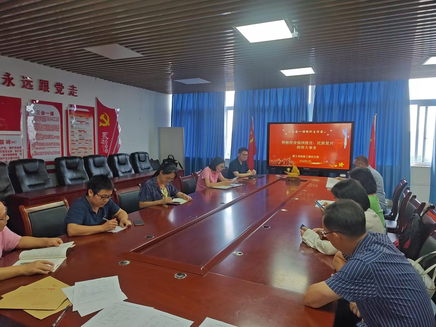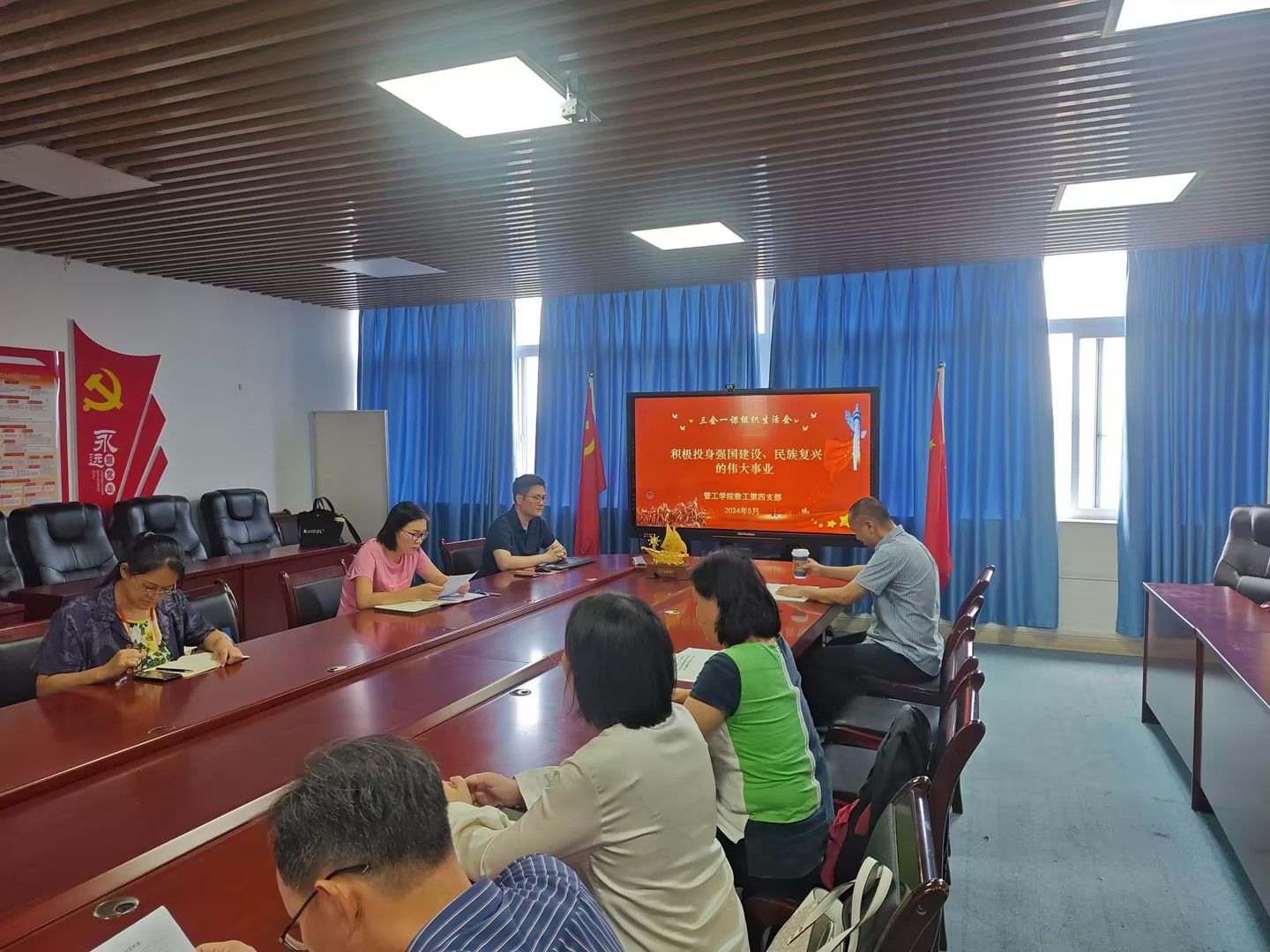 2024年5月24日下午,太阳成tyc7111cc教工第四党支部在学院会议室8709举行了本月的党组织生活会。会议由教工第四支部书记邢文婷同志主持,全体教工党员参加了本次学习。本次活动以“组织动员亿万职工积极投身强国建设、民族复兴的伟大事业”为主题,旨在深入学习贯彻习近平总书记关于工人阶级和工会工作的重要论述精神,激发广大党员教职工的爱国热情和奋斗精神,为实现中华民族伟大复兴的中国梦贡献力量。