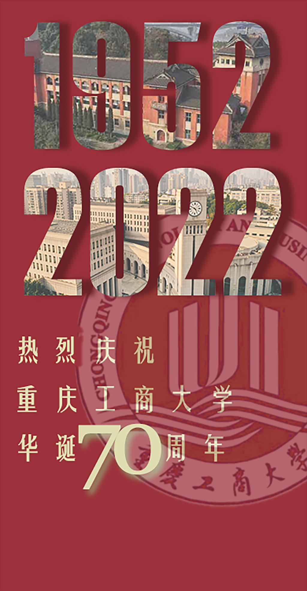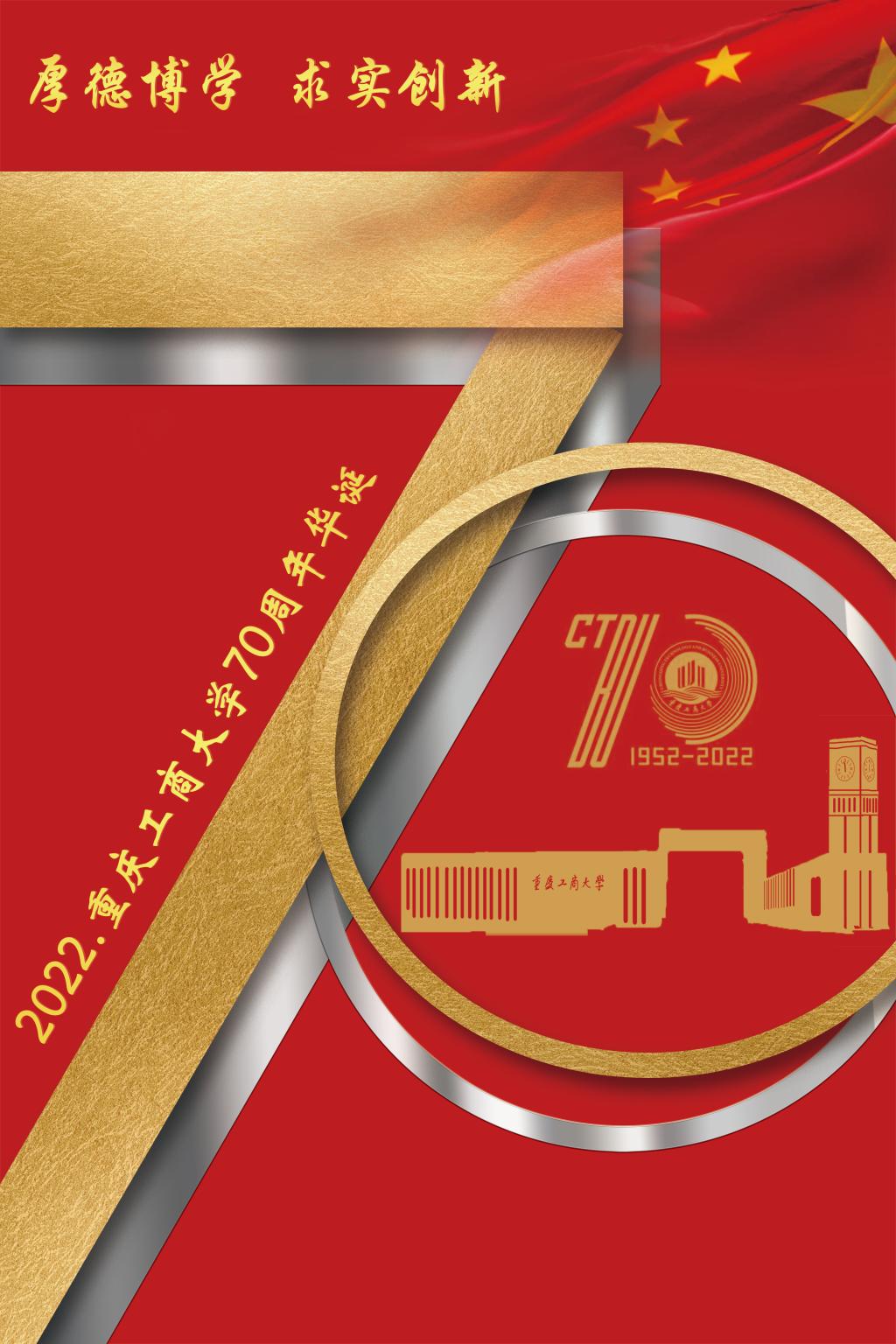 李楠同学的作品以喜庆的红色作为底图颜色,主图形“70“采用金色为主,金属感为辅,添加了神秘感与科技感,同时也与七十周年校庆图标相呼应,“0”中镶嵌有七十周年校庆图标与校门剪影。