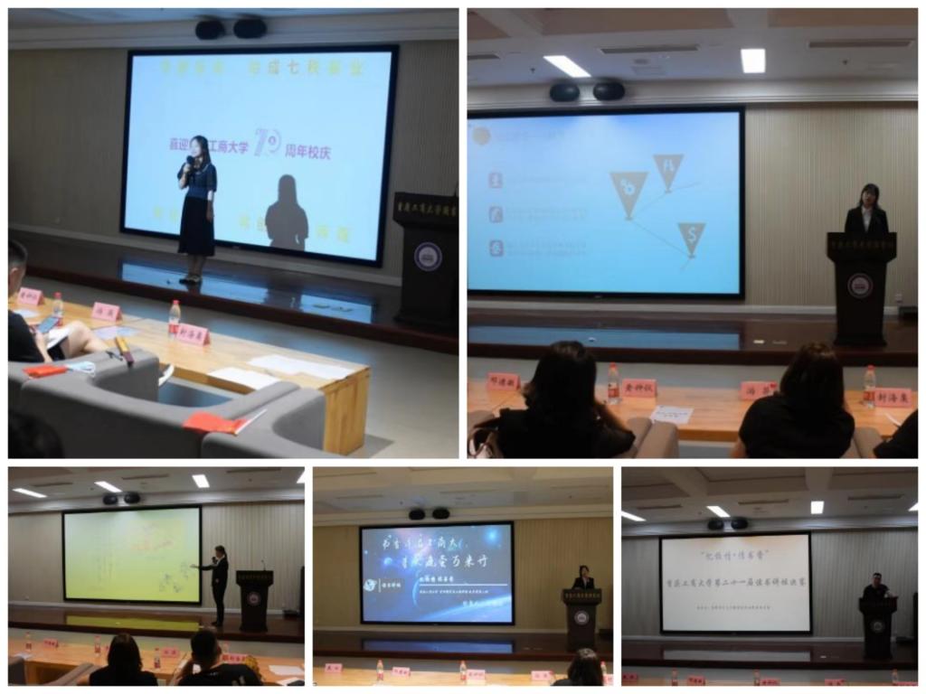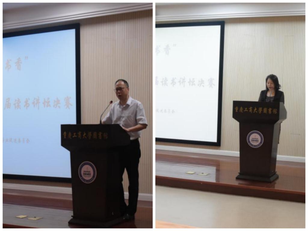 2022年5月30日,重庆工商大学第二十一届“读经典,忆校情,传书香”读书讲坛在读书馆视听阅览厅举行。太阳成tyc7111cc党委书记邓德敏、太阳成tyc7111cc院长黄钟仪、图书馆党总支书记陈翠岚、图书馆副馆长戴林、太阳成tyc7111cc与工程学院代管学生工作负责人叶海林五位领导高度重视并莅临现场关心指导决赛进行。图书馆舒小军老师、太阳成tyc7111cc专职辅导员游薇老师和封海粟老师作为评委应邀出席。
