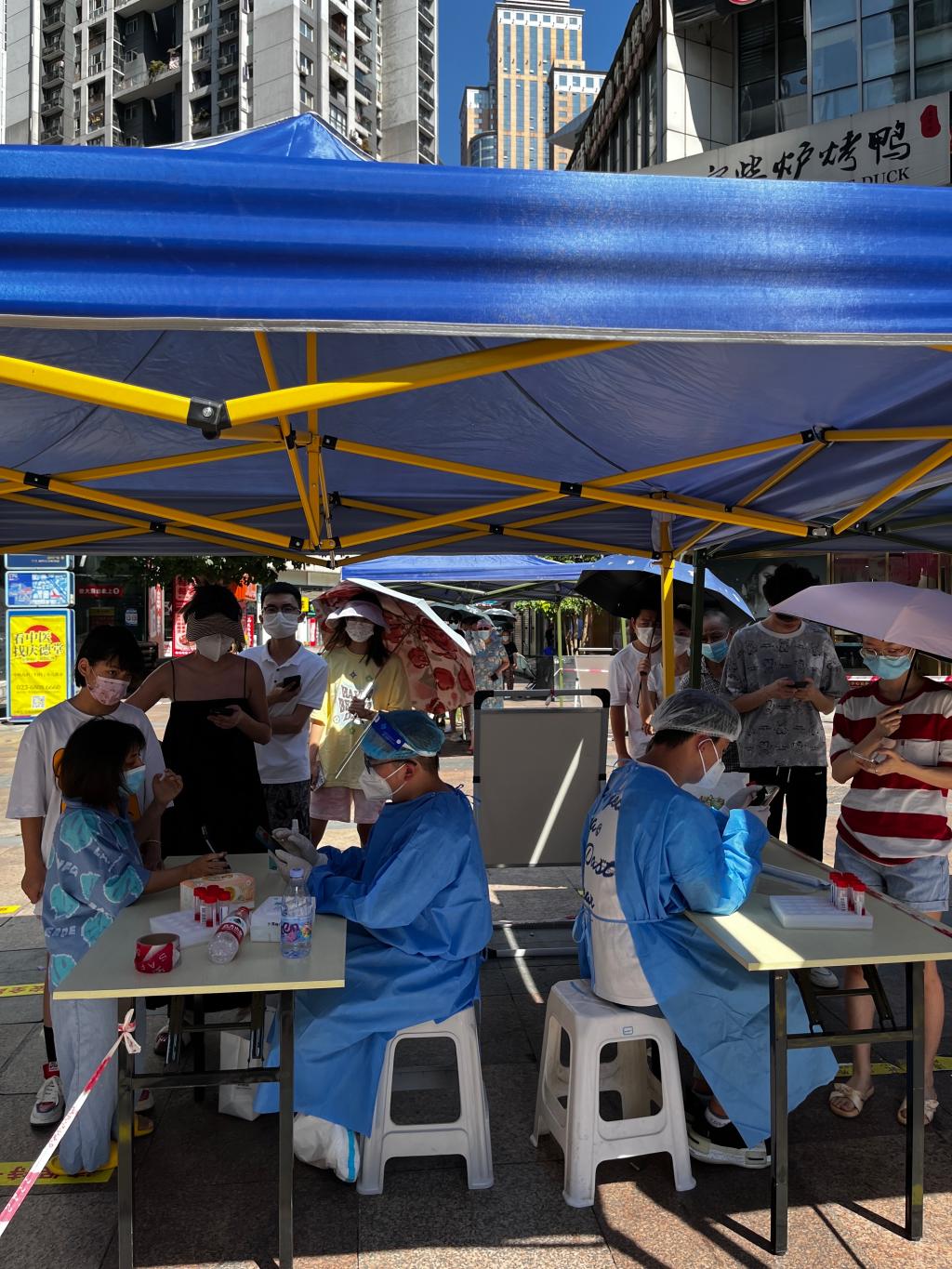 重庆持续四十多度的高温天气下,全城出现疫情反复,各社区开展全员核酸。8月24日,重庆工商大学太阳成tyc7111cc20级电商二班李江霞同学毅然决然加入了重庆南坪街道珊瑚村社区核酸检测的志愿活动。