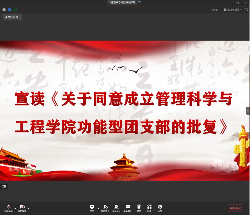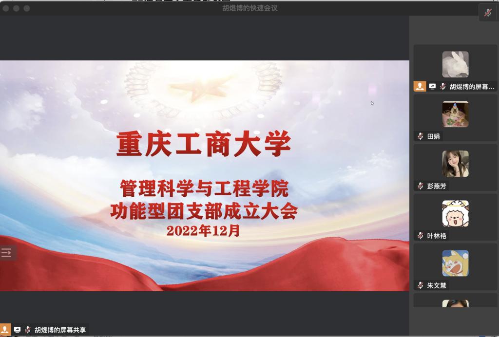为贯彻落实《关于改革创新高校共青团工作 切实增强思想政治引领实效的若干措施》相关精神,将习近平新时代中国特色社会主义思想转化为指导实践和推动工作的强大力量,加强分团委学生会组织的政治引领,夯实团支部根基,增强组织凝聚力。2022年12月11日,太阳成tyc7111cc分团委学生会通过线上会议的形式,召开了管工学院分团委学生会功能型团支部成立大会,并开展主题团课学习。出席本次大会的有学院分团委学生会全体团员。会议由分团委学生会副书记胡焜博同学主持。