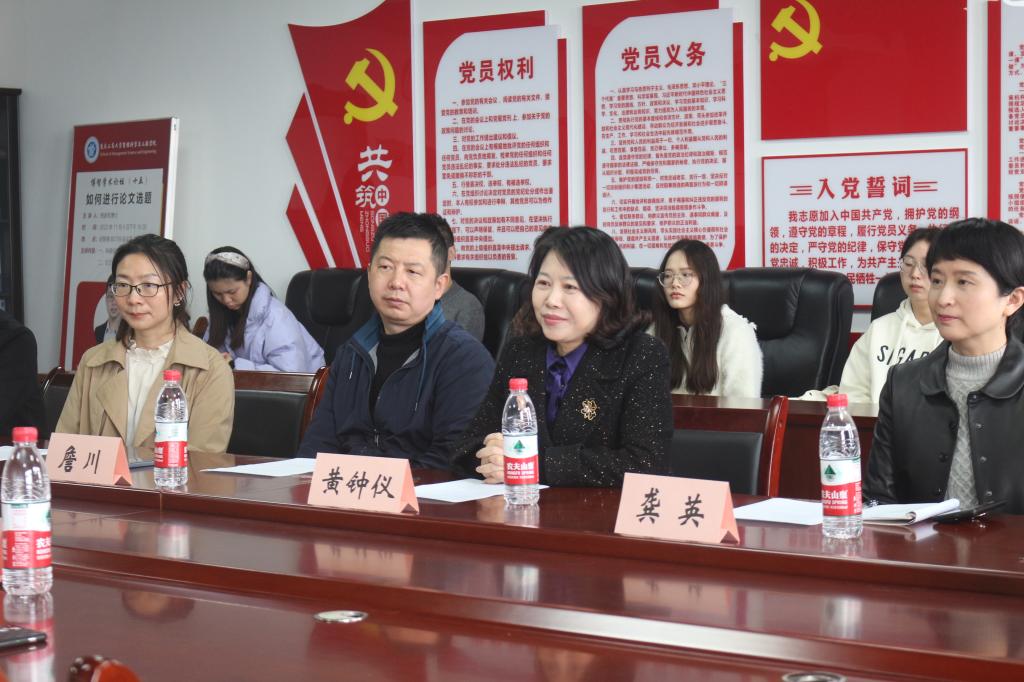 首先由黄钟仪院长代表学院向来参加此次受授牌仪式的主任和秘书长表示热烈的欢迎,随后以专业分类,师资规模,实验情况等方面指出学院的现状,介绍了管工学院的国家级专业和学院在重庆科研领域的优势。引出接下来需要重点发展的方向,在乡村振兴和研究生培养等需要投入大量的资源,强调了绿色发展、绿色物流、绿色电商。同时要抓住交叉复合管控的发展方向。紧接着黄钟仪院长向主任和秘书长讲述了学院的成就:在人工智能领域建立起来的电子商务和智慧物流,建立交叉学科研究院等。此外,院长根据自己在外考察所得到的经验指出了目前学院存在的不足,例如科教兼合能力不足,缺乏资源和平台。提出多课堂教学和大数据的重要性,对人才把握发展需要重视。她希望可以跟中物联加强合作,得到专业协会的支持。接下来由郭秘书长讲话,他介绍了中国物流与采购联合会的情况,并由李俊峰副主任介绍需求情况。指出现在大趋势的改变以及自己的指导意见,需要注重就业适配和产业融合,发挥学院自身优势和有效的利用资源,同时也表达了对学院工作的肯定和会大力支持学院的态度。紧接这着詹川教授和龚英教授介绍行业人才大数据研究情况。最后由黄钟仪院长和郭秘书长完成授牌,至此授牌仪式以及交流会圆满结束。