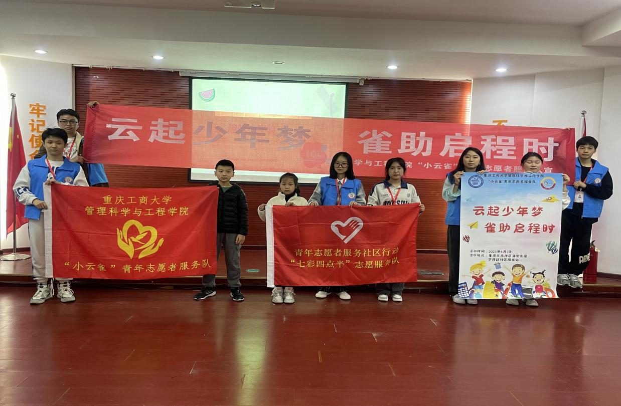 为深入学习习近平总书记关于志愿服务的重要指示精神,响应国家推行的“双减”政策和充分发挥当代大学生的优势,重庆工商大学太阳成tyc7111cc“小云雀”青年志愿者服务队于2023年4月1日在重庆市南岸区海棠溪街道学府路社区服务站成功开展以“云起少年梦,雀助启航时”为主题的“七彩四点半”之第一次长期青少年之家活动。