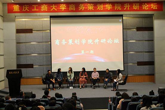 为激励学院2015级学子考研,调动考研激情,营造良好考研氛围,2017年4月28日13:30,在博智楼7100,商务策划学院升研论坛(第一期)拉开帷幕。本次论坛邀请的嘉宾有商务策划学院分党委书记邓德敏、院长骆东奇、分党委副书记叶海林、副院长詹川以及商务策划学院辅导员古纯玉、游薇、朱华华。学院2013级金艳、高翔、唐园园、徐柏英、汪小敏、张月秋、刘梅梅、冉冈,作为优秀升研学长、学姐,同2015级全体学生分享心路历程,传授升研经验,交流学习方法。本次升研论坛由学院辅导员封海粟、向丹丹、邓艺主持。
