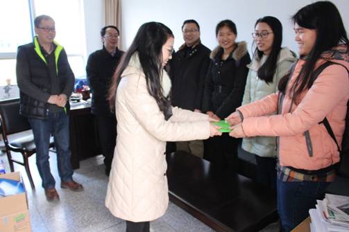 商务策划学院党总支书记邓德敏、院长骆东奇、党总支副书记叶海林分别向学生处及勤工书报亭表示感谢,感谢学生处领导和老师以及爱心书报亭的师生对商策的患病学生冯晓关怀和帮助。
