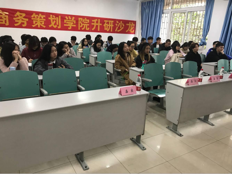 最后是由商务策划学院企业管理专业2018级硕士袁奉娇学姐为大家分享考研心得并答疑解惑。学姐先是分享了她的考研过程和心得。她谈到,考研过程本身是很艰难的,在这期间身边会充斥着各种各样的诱惑和困难,但是如果坚定了考研的决心,就得要全身心的投入进去,不被外界所干扰。她还讲道,在面对考研期间的诱惑、困难和无聊,一个人很难坚持下去的时候,可以找个伙伴,互相鼓励、互相加油。在分享完心得之后,学姐也为大家解决了一些对考研的未知提出来的一些问题。
