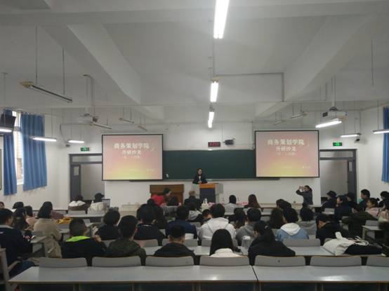 2018年11月27日10:20-11:50,针对2016级物流管理一、二班以及电子商务二班的第二十四期升研沙龙活动在博智楼307教室举办,出席本次沙龙的嘉宾有秦星红老师、方新老师、贾镜渝老师以及辅导员饶俊妮老师,另外还有幸请到了商务策划学院2017级技术经济与管理大数据方向研究生杨婷婷学姐、2018级技术经济与管理创新创业管理方向研究生吕安妮学姐。四位老师与两位研究生学姐利用一个半小时的时间,为同学们分享考研的经历经验,帮助他们明晰考研的方向,坚定考研的信念。