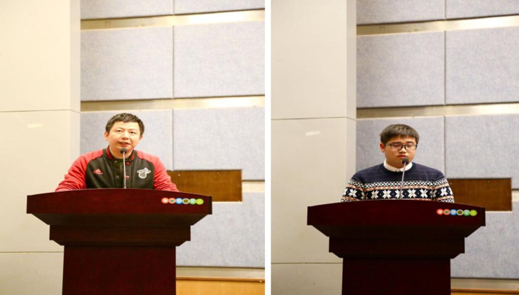 在颁奖环节中,学院依次对获得“徽商”奖学金的优秀团队、获得大学生学科竞赛国家级奖项的优秀团队、获得大学生学科竞赛省部级奖项的优秀团队代表、第十二届学生科研 “六大赛事”的获奖团队代表进行表彰。获奖团队学生代表周马东和优秀指导教师代表詹川老师分别发表获奖感言。