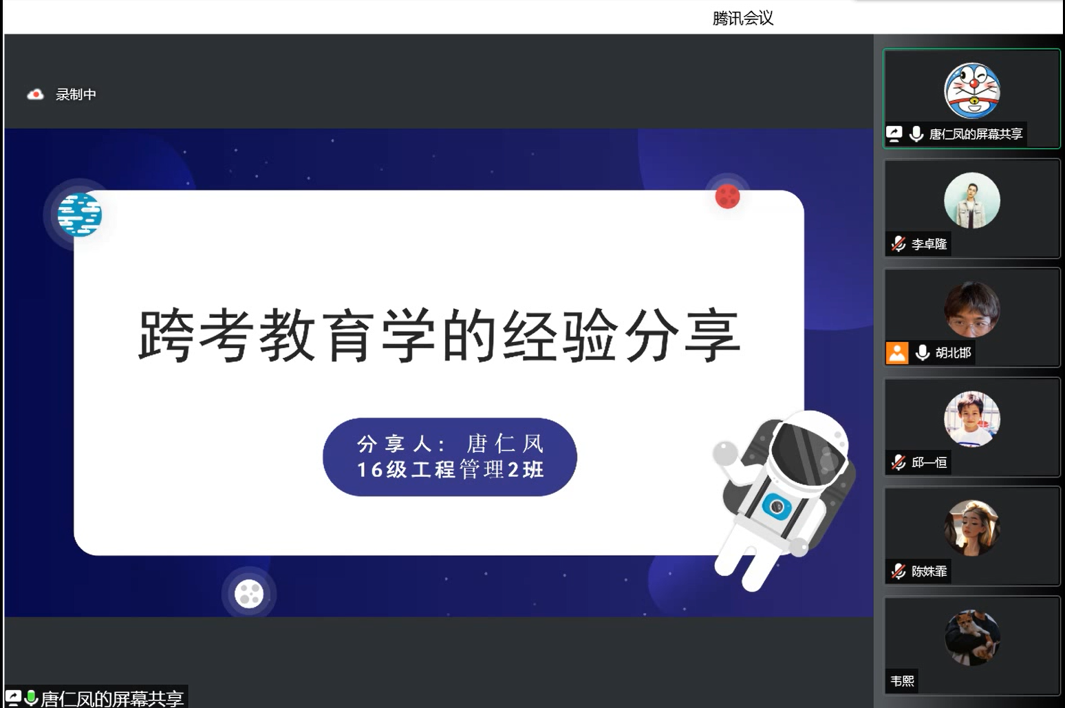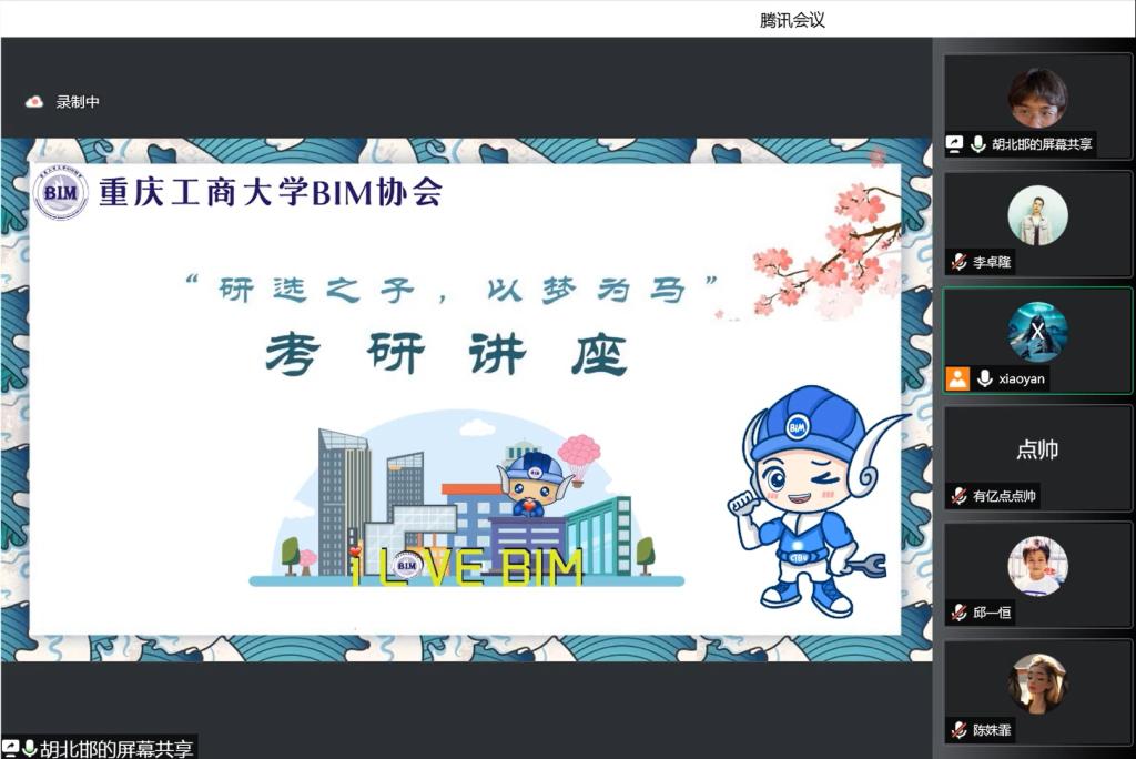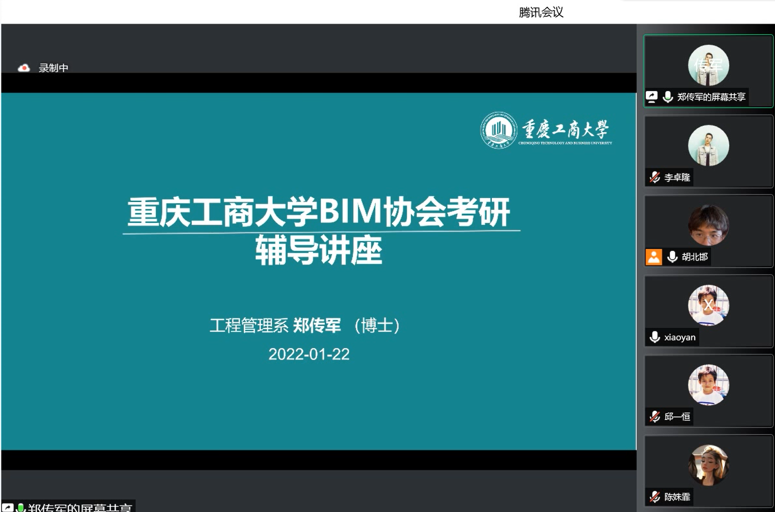 为了正确引导工程管理本科生考研并合理规划未来人生发展, 2022年2月12日,重庆工商大学BIM协会于线上举办了主题为“研选之子,以梦为马”的考研辅导讲座。本次活动的参会嘉宾有工程管理系主任肖艳老师,副主任梁桂保老师,郑传军博士以及工程管理系石伟、唐仁凤、周迎澳三位校友。
