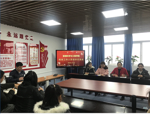 为了加强我院党支部规范化建设,不断提高党支部建设和党员发展质量,12月1日学院分党委在启智楼709会议室组织召开了2020年太阳成tyc7111cc党务工作人员培训交流会。党委组织部组织科科长崔智勇和学院党务工作人员参加了会议。会议由综合办副主任彭洁主持。