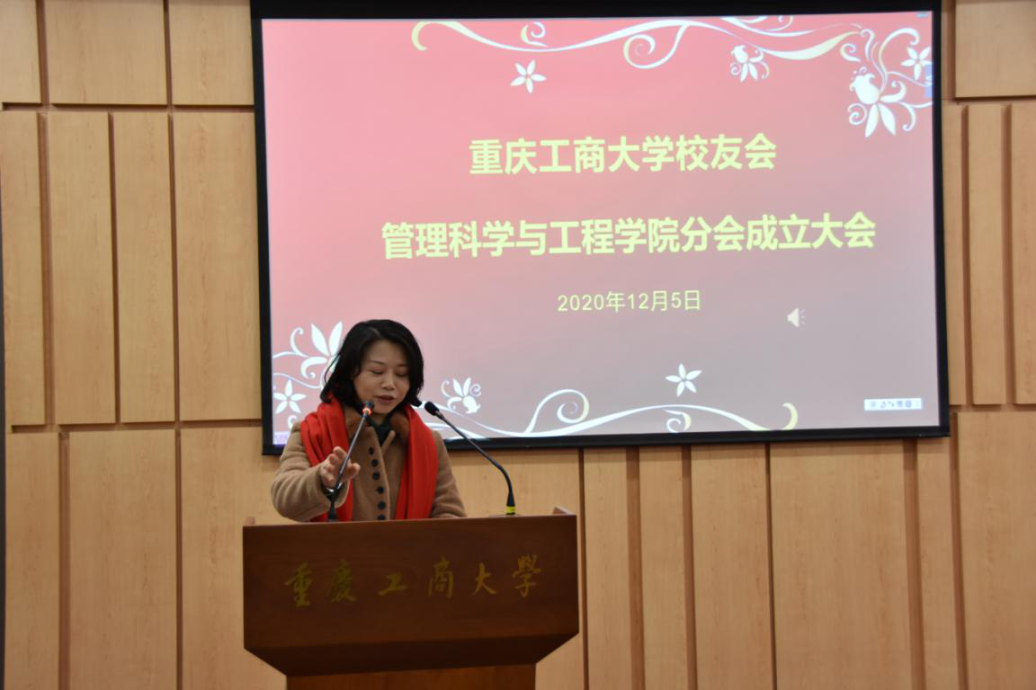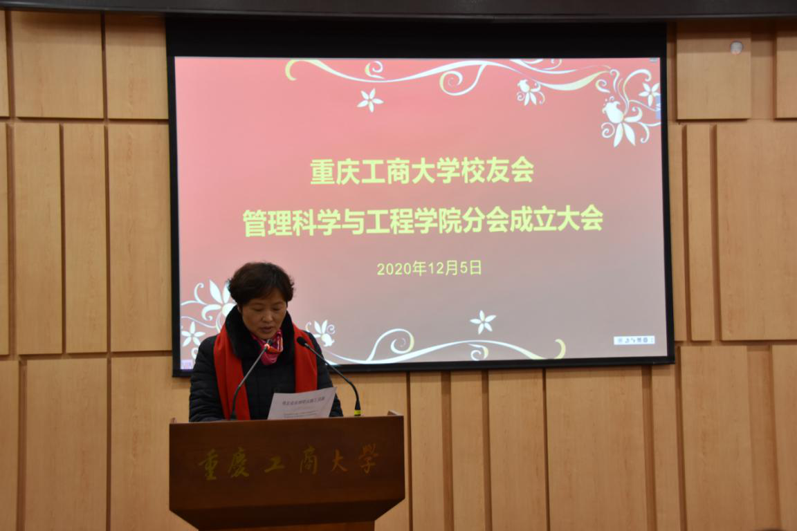 学校校友会副会长王小玲宣读《关于同意成立重庆工商大学校友会太阳成tyc7111cc分会的批复》。大会审议并通过了《重庆工商大学校友会太阳成tyc7111cc分会章程》以及分会会长、副会长、秘书长、副秘书长、常务理事、理事建议名单。