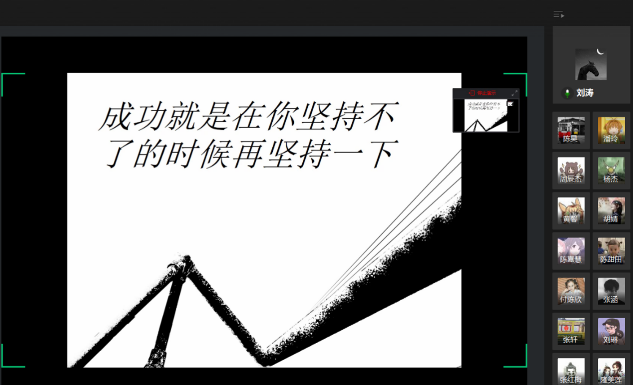 在邓老师向参与本次沙龙的学子,介绍升研活动和升研工作的情况之后,刘涛学长围绕“考研不过一场心理斗争”进行考研经验分享。刘涛学长就“要不要考研”这一问题展开论述,同时说明了数学及英语对于考研的影响。之后他分享了在考研路上的心得并点明了室友、研友及时间管理的重要性。最后学长讲到:“成功就是在你坚持不住的时候再坚持一下。”就学生问题“考研后期应怎样稳住心态”,刘涛学长表示,不要孤军奋战,调好生物钟,总会扛过去的。