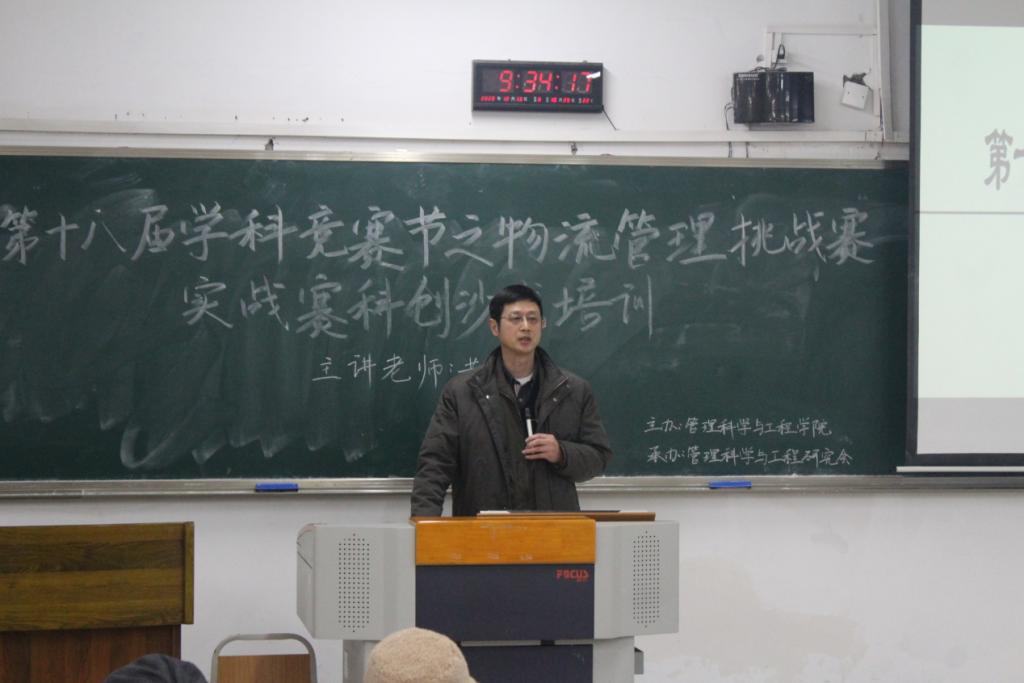 2020年12月13日早上9:30,太阳成tyc7111cc在南岸校区博智楼(七教)07306举办了第十八届“学科竞赛节”之物流管理挑战赛(实战赛)科创沙龙。本次沙龙以物流挑战赛的实战培训为主要内容,邀请到太阳成tyc7111cc黄辉教授对参与第十八届“学科竞赛节”之物流管理挑战赛的团队进行培训和辅导。