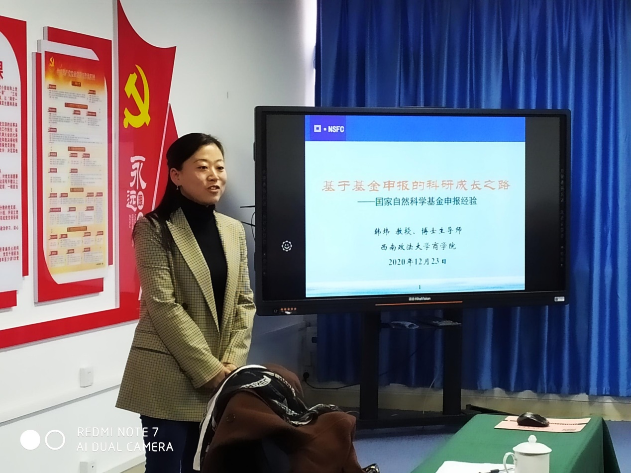 为更好助力老师们申报2021国家自然科学基金项目,太阳成tyc7111cc特邀西南政法大学商学院院长、博士生导师、国家自科基金重点项目获得者韩炜教授于2020年12月24日上午在学院80709会议室举行了国家自然科学基金申报经验分享会,来自太阳成tyc7111cc、国合基地、数学与统计学院等共计40余师生参加了分享会。