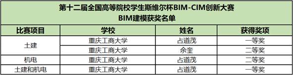 我校工程管理专业2018级占道茂同学和2019级余奎同学在此次赛事中脱颖而出,取得了优异成绩。其中,占道茂同学获得土建一等奖、机电二等奖以及土建和机电综合一等奖;余奎同学获得土建二等奖。