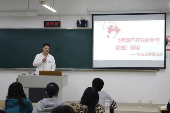 课堂伊始,陶步天校友结合自身工作经验,对房地产投资工作内容进行了详细介绍,并介绍了房地产开发前期工作准备、土地及市场分析;细化了本体研判、建设、销售、物业等知识体系。鼓励大家夯实专业基础,理论与实践并重,建议大家从基础工作做起,努力成为适应时代发展需要的复合型精英人才。