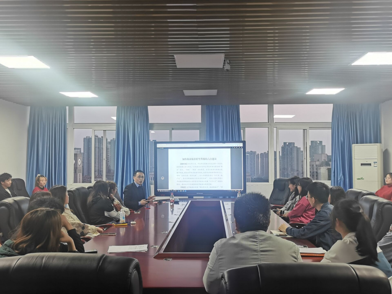 首先,莫小平老师分享了“关于打造‘网红城市2.0版’利用‘网红’实现‘产业红’的思考”相关课题,语言幽默风趣,常常惹得同学们捧腹大笑,气氛欢快愉悦。在进行了相关话题的阐述后,莫小平老师点开了第二个研究的课题——加快我市旅游转型升级话题的六点建议,并开始了有关重庆市网红景点的分析。接着,袁俊老师通过案例切入,探讨了如何打造从一个新品牌打造成一个网红品牌,需要怎么进行网络营销。