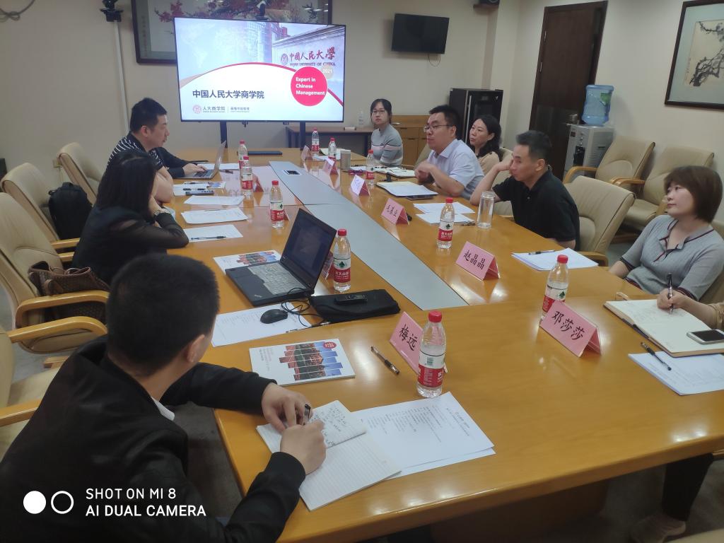 2021年5月28日上午,学院院长黄钟仪、副院长詹川、工程中心常务副主任代春艳、电子商务系主任唐国锋及信管系梅远飞博士一行前往中国人民大学商学院调研,人大商学院院长毛基业、教务办主任李宏、管理科学系副主任张瑾、人力资源办公室主任赵晶晶、学科建设与科研办公室主任邓莎莎、教务办公室硕博项目主管马玉阳参加接待。