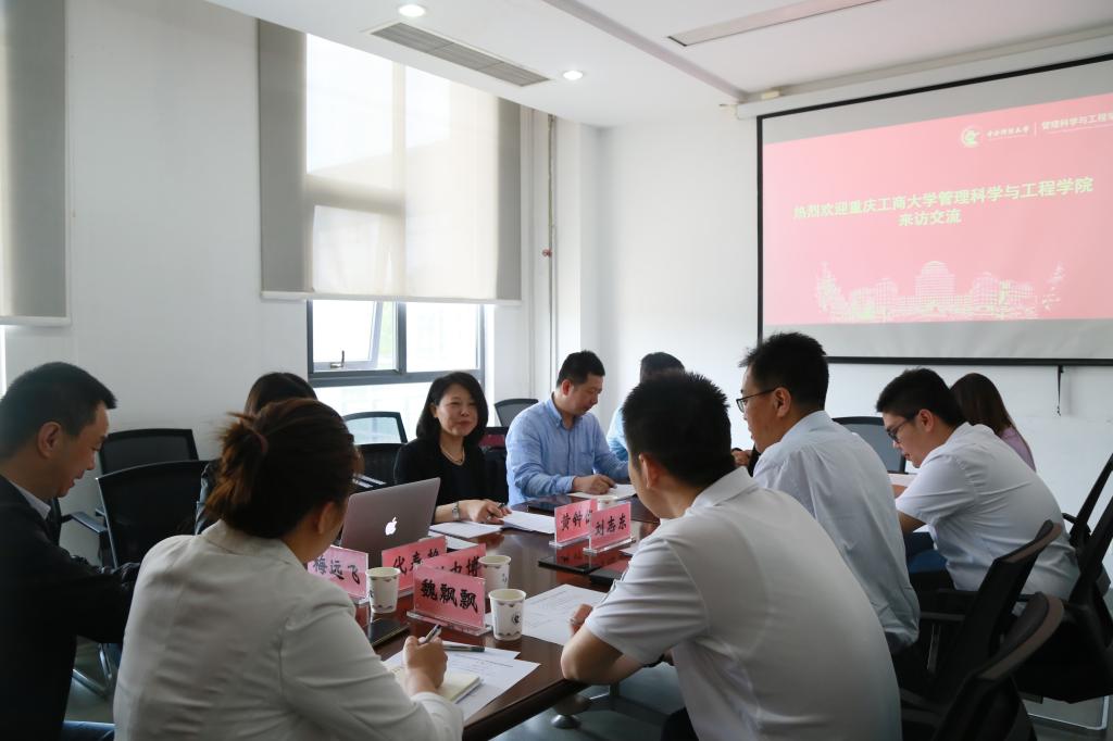 双方围绕硕士研究生培养、实验室建设、MEM运营与发展、信息系统建设与发展、管理科学院与工程系建设与发展等方面进行交流。首先,郑海涛副院长向调研组一行介绍了学院建设基本情况、管理与经济学科群、一流本科专业、研究生培养、科研论文、国际合作;随后,程玉辉副主任介绍了MEM非全日制招生、学生活动,韩小汀主任围绕实验中心建设历程、人员配置、数据驱动及行为科学实验特色、项目申报;最后,调研组一行参观了经管学院实验中心。院长范英教授最后接见了调研组一行,并就支持我院的教育教学、科研交流、人才培养等方面的进行了交流,围绕利用北航经管学院的高平台和重庆工商大学管科学院的地缘优势开展项目以及研究合作进行了愉快的探讨。