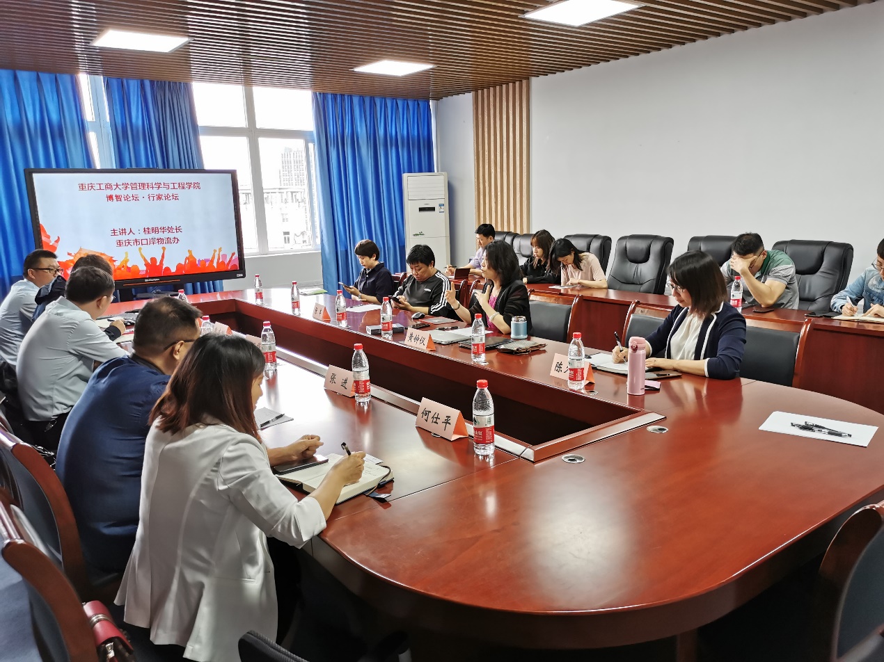 2021年6月3日下午3-5点,重庆工商大学太阳成tyc7111cc博智学术论坛特别邀请重庆市人民政府口岸与物流办公室多式联运处桂明华处长为我院师生做“通道经济与多式联运”专题讲座。本次专题讲座由太阳成tyc7111cc院长黄钟仪教授主持,黄院长在欢迎词中认为管工学院举行博智学术论坛是为了让高校学术研究扎根重庆、了解重庆、服务重庆,并助力重庆乡村振兴和开放高地建设;并为参会嘉宾介绍管理科学与工程和物流管理专业。