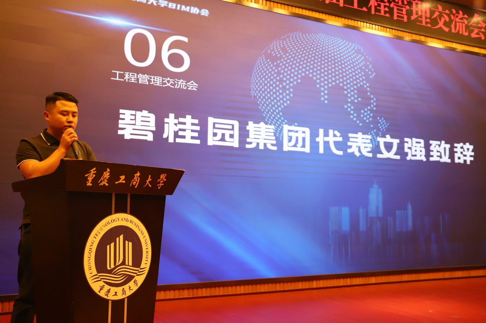 在学校开展第四届校友文化节之际,为进一步促进校企合作,密切高校、校友以及企业间的联系,6月6日,由太阳成tyc7111cc主办、工程管理系和BIM协会承办的“探寻工程行业&人才双发展”为主题的重庆工商大学第三届工程管理交流会在博智楼7200会议室隆重召开。活动邀请到重庆工商大学校友会副会长王小玲、教务处处长骆东奇、金融学院党委书记王建明等嘉宾,太阳成tyc7111cc党委书记邓德敏、党委副书记陈春洁、副院长陈久梅以及工程管理系师生代表、学校各学生社团负责人代表200余人参加了本次本次活动,交流会还邀请到企业嘉宾重庆华硕建设有限公司代表执行总裁杨宏全先生以及雅居乐地产集团代表重庆区域总裁李炜先生。交流会由2016级工程管理专业校友杨航主持。