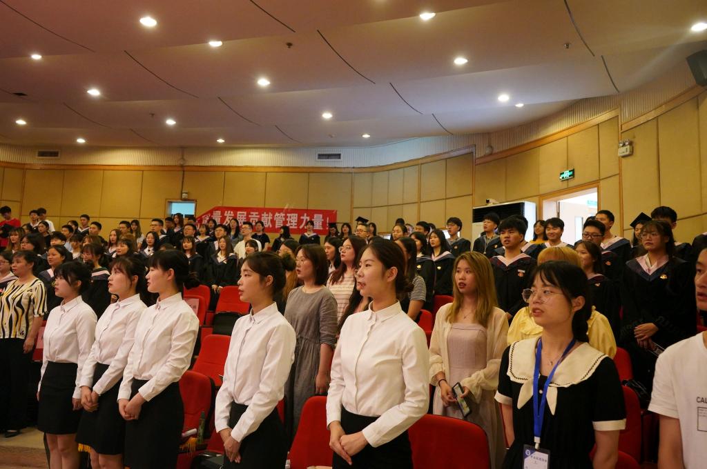 “前进,前进,前进进……”在嘹亮的国歌声中,本次毕业典礼正式拉开序幕。首先,由学院学位委员会主席,院长黄钟仪致辞,“学会团队合作、养成研究的习惯、树立开头精神,在新时代的画卷中奋勇争先。”今年是实施“十四五”规划的开局之年,黄院长表示,未来前景广阔,现代青年生逢其时,要坚持创造性学习,建立系统思维,追求一流绩效,避免内卷化增长,以主动的探索为理想培养生长土壤。