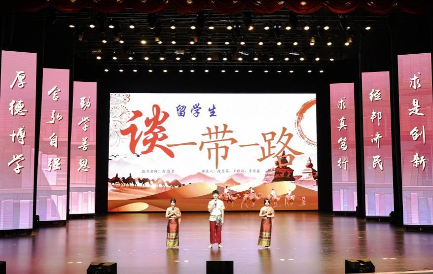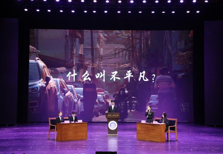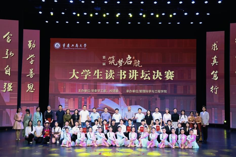 决赛现场,入围的8组队伍采用各具特色的表演形式,激情演绎出对书籍的热爱和理解,彰显了重工商大学子“爱读书、读好书、善读书“的浓厚氛围。一号队伍《平凡的世界》《觉醒年代》(分享人:尹金叶、高玮丞、胡洋铭、刘佳雪、蒋孟萱)通过辩论表演赛的形式,论证平凡而不平庸,号召青年砥砺奋斗;二号队伍《2021年“一带一路”青年发展报告》(分享人:泰国留学生徐月芬、柬埔寨留学生李安鑫、泰国留学生王雅达)向观众展示“一带一路”倡议为沿线国家带来的崭新面貌和人类命运共同体的宏伟蓝图;三号队伍《我与地坛》(分享人:杜安琪、张金瑞)以史铁生的视角展现出对生命的思考;四号队伍《我们生活在巨大的差距里》(分享人:陈新燃、赵翊彤、徐志科、向照、邓晨鹏)用幽默诙谐的对比展现家庭价值观的衰落和个人主义的兴起对社会的重要影响;五号队伍《江城》(分享人:杨浚杰)描绘了一座外国友人眼里历经变迁而又充满人文关怀城市——涪陵;六号队伍《黄文秀扶贫日记》(分享人:涂烨、吴莉权)用朴实无华的演讲刻画出一个无私奉献,辛勤为民的底层干部;七号队伍《我们仨》(分享人:何驯、古丽努尔·木沙、余冰冰、黄观宇)以第一人称视角将一个家庭的温情故事娓娓道来;八号队伍《蒹葭》(分享人:罗嘉豪、郭渝丹、吕辰露、李春红、蒋可人、吴翔龙、 高婉君、杨芮、杨瑷宁)描绘出伊人与君子水岸邂逅的爱情故事。比赛全程激情澎湃、高潮迭起,现场掌声不断。
