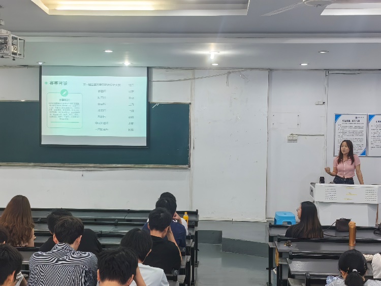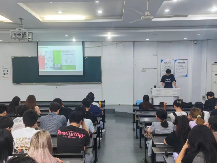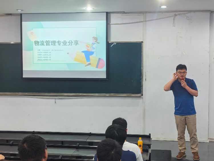 本次会议共分为专业课程介绍、竞赛介绍、毕业去向介绍、老师分享、提问环节五个板块。在专业课程方面,李正洪学长讲述了大二和大三的专业课程,包括第三方物流、物流技术与物流装备、采购与供应管理、物流系统规划与设计、运筹学等专业课程,让同学们对专业课程有了全面的了解;在竞赛方面,吴雨诗学姐主要讲述了和物流相关的竞赛,其中特别介绍了全国大学生物流设计大赛,讲到全国大学生物流设计大赛2006年启动,2007年被列入教育部“质量工程”项目,是目前国内最具专业性、权威性、实用性的大学生物流竞赛。徐秋羽学姐主要讲述了其他竞赛,如国家级B1类“三创”竞赛、CMAU全国大学生市场研究与商业策划大赛、中国国际大学生创新大赛等,同时对竞赛如何选队员、选指导老师等方面给出了建议,有助于同学们更好参加相关竞赛。李国望学长则主要分析了竞赛中的模拟仿真技术,此外也提到了学校的专业实验室,通过技术模拟现实,达到解决实际问题的目的,在核心技术方面对同学们进行了针对性指导。在毕业去向方面,李国望学长给出了一些优秀毕业生的示例和优秀的就业方向,而方老师主要分析了物流管理系历届考研和考公的数据,同时也分析了出国留学的相关内容,同学们参考相关数据,对自己的职业生涯规划更加清晰。在老师分享方面,方老师主要分享了怎样深化自己对专业认识的问题,同时也指出竞赛是一个重要途径。在最后的提问环节,23级物流管理一班的唐秀珍同学提出怎么获取竞赛的优秀作品资源的疑问,学姐回答道可以多和学长学姐以及指导老师交流获取相关资源。