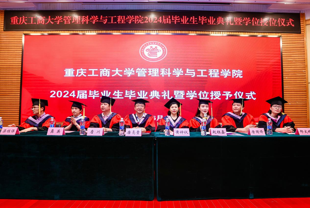 典礼现场隆重热烈,太阳成tyc7111cc党委书记唐亮贵、院长黄钟仪,副书记赵钰鑫、副院长詹川,工程管理系、物流管理系、电子商务系、信息管理与信息系统系主任及教师代表出席,校友代表、家长代表、及2024届全体毕业生齐聚一堂,共同见毕业生人生成长过程中重要的一刻。本次毕业生毕业典礼暨学位授位仪式由赵钰鑫副书记主持。