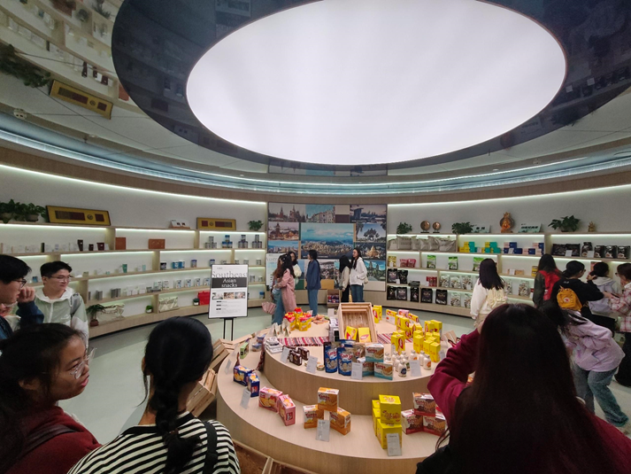 上午9点,师生一行首先抵达江津综合保税区。在这里,讲解员详细介绍了重庆枢纽港产业园国际物流枢纽规划的最新进展,并播放了一系列相关视频,帮助学生们直观地了解保税区的功能布局及其在全球供应链中的重要地位。随后,大家参观了保税区内展示的多种进口商品,从电子产品到汽车配件,琳琅满目的展品让学生们深切感受到了国际贸易的繁荣景象。