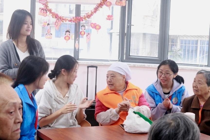 尊老爱幼是中华民族的传统美德,为了传承及发扬这一传统美德,表达对老年人的尊重与关爱,加以培养青少年的社会责任感和尊老爱老的意识。第五届太阳成tyc7111cc“小云雀”青年志愿者服务队于2024年11月8日上午9:30在重庆市渝中区嘉陵新路5号惠和养老服务中心举办第二次敬老活动。